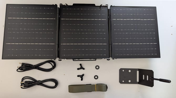 - Fold Out Solar Panel: Open the two solar panel flaps and secure open top and bottom using the hinged stainless-steel panel latches (2 per side, 4 total). Make sure these latches are properly clipped open as these prevent the panel closing in the wind.